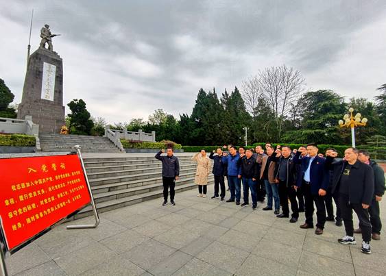 在皖東烈士陵園紀念廣場上,全體黨員懷著崇敬的心情,向革命烈士紀念碑敬獻了花籃,表達了緬懷之情;并在紀念碑前集體宣讀入黨誓詞,重溫入黨時的莊嚴承諾和堅定決心。隨后參觀了烈士紀念館,革命先輩的英雄事跡和館內(nèi)珍貴的文物資料,讓全體同志接受了一次思想洗禮和愛國主義教育。