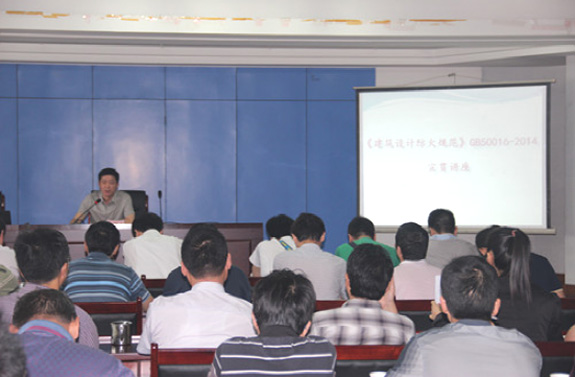 市規(guī)劃院院長賀玉龍傳達(dá)了“省《規(guī)范》GB50016-2014宣貫培訓(xùn)”精神,并與參加省宣貫培訓(xùn)的胡自立、崔睿、李文成、沈光紅、陳潔、密齊峰六位同志一起,分別從規(guī)劃選址、平面布局、規(guī)劃和建筑工程設(shè)計等側(cè)重點,就新老規(guī)范的變化、新規(guī)范中的總則、術(shù)語和符號、廠房和倉庫、甲乙丙類液體及氣體儲罐(區(qū))和可燃材料堆場、民用建筑、建筑構(gòu)造、滅火救援設(shè)施、消防設(shè)施、電氣、供暖通風(fēng)和空氣調(diào)節(jié)等方面的重點內(nèi)容,向與會人員進(jìn)行了傳達(dá)和講解。